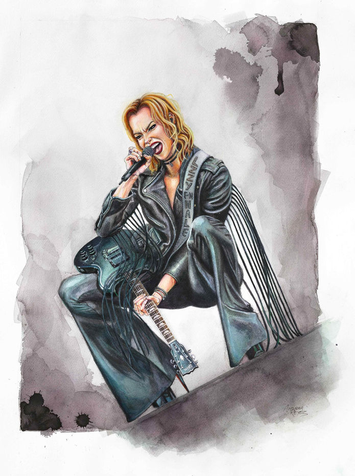 My illustration style balances fine detail with painterly spontaneity. Over time, I’ve specialized in rockstar portraits—capturing musicians’ raw energy and individuality through watercolor, gouache, graphite, and digital painting.